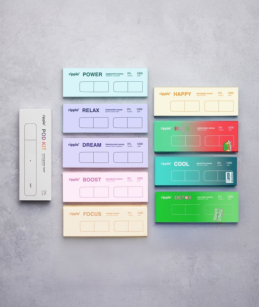 You have every ripple⁺ aroma available at the tip of your fingers. Rechargeable device. 9 aromas. 9,000 puffs. Non-stop enjoyment. This experience will leave you in a cloudy state, but you’ll be experiencing the ripple⁺ world in full effect.