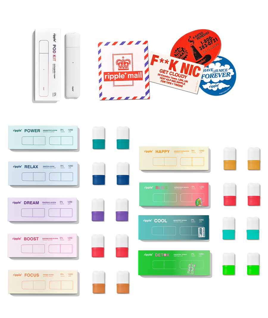 Each ripple⁺ pod will deliver 500 puffs (each pack contains 2x pods), meaning you get multiple days & weeks of plant-powered goodness. You know where to find us when you need a new batch!