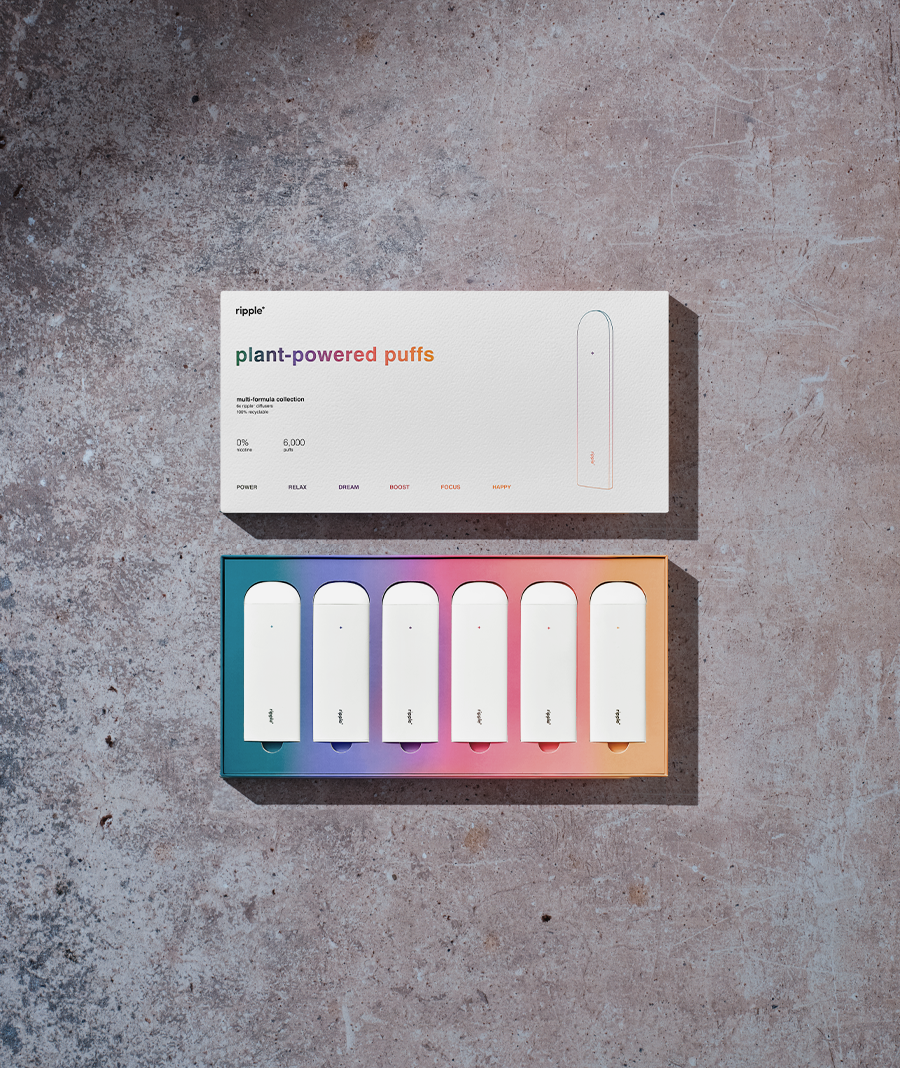 Hell no. Ripple+ is a portable aromatic inhaler which, is totally nicotine-free and non-addictive. Which, is why we’re here, doing our plant-powered thing! Our next-gen aromatic diffusers are designed to help with oral fixation by replicating that hand-to-mouth gesture associated with smoking. The difference? We don’t use nicotine; we use plant extracts and natural aromas to transport you to a puff-able, non-addictive utopia. Sweet!
