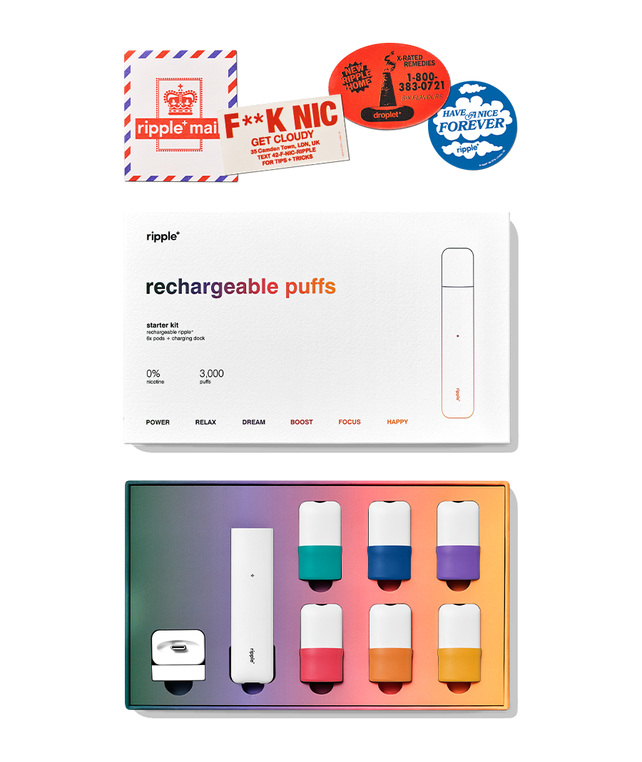 Next-level ripple+ tech and our cleanest ever puffs are only a Starter Kit away. Here’s what’s inside: