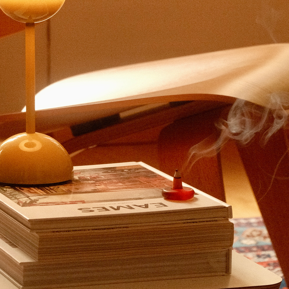 Place your droplet on top of the sea glass holder, grab your light, light the tip of your droplet and gently blow out after a few secs. Now, settle down & let the flame burn.