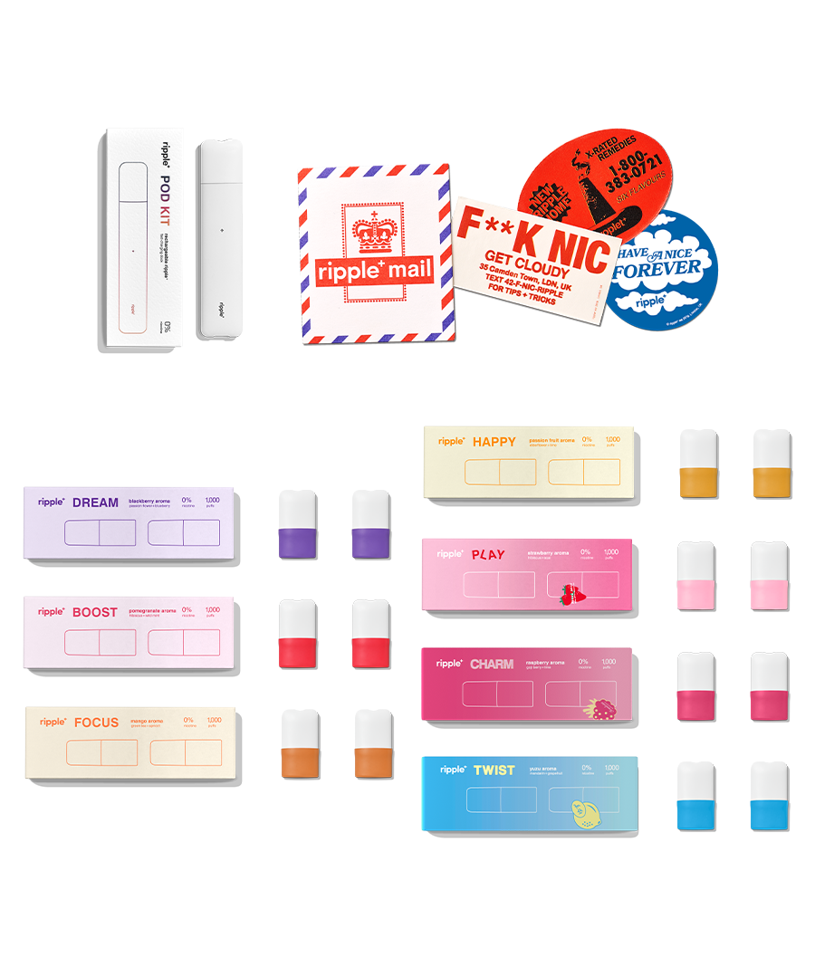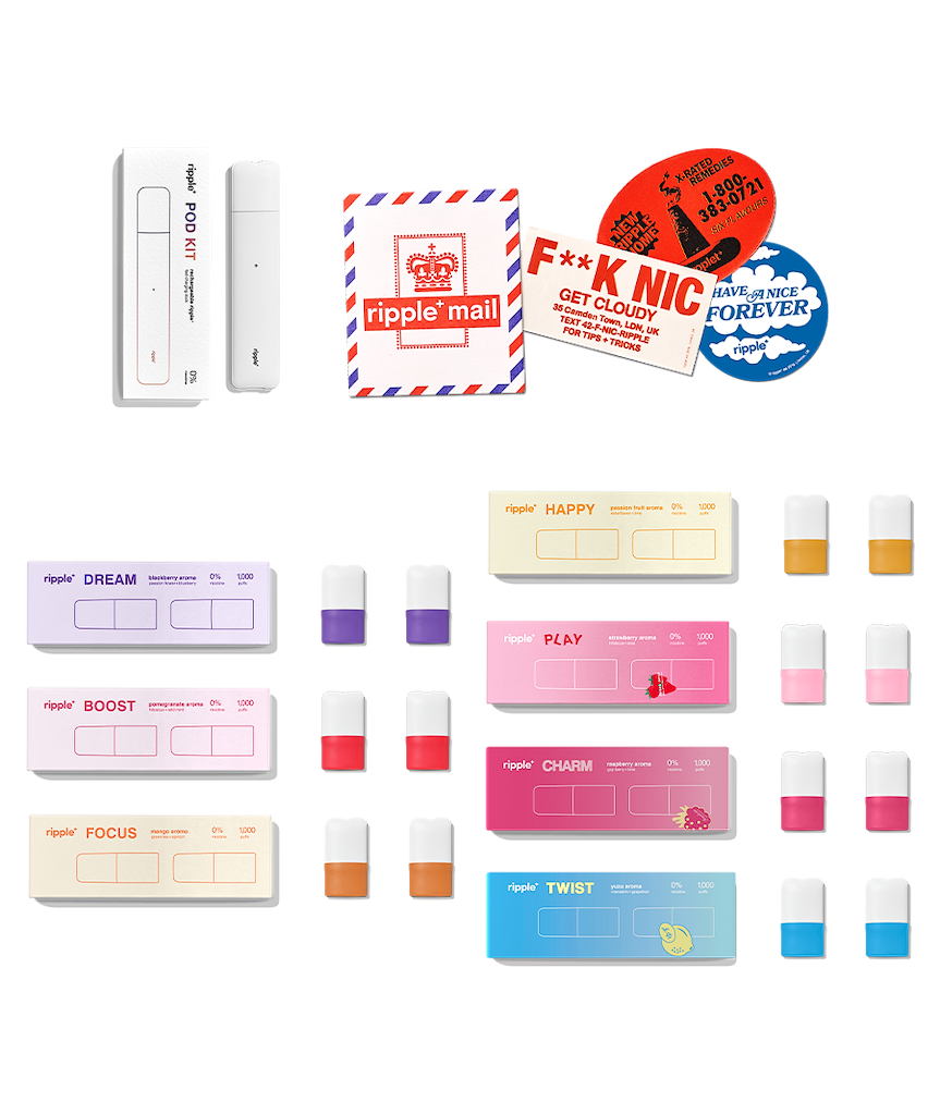 Each ripple⁺ pod will deliver 500 puffs (each pack contains 2x pods), meaning you get multiple days & weeks of plant-powered goodness. You know where to find us when you need a new batch!