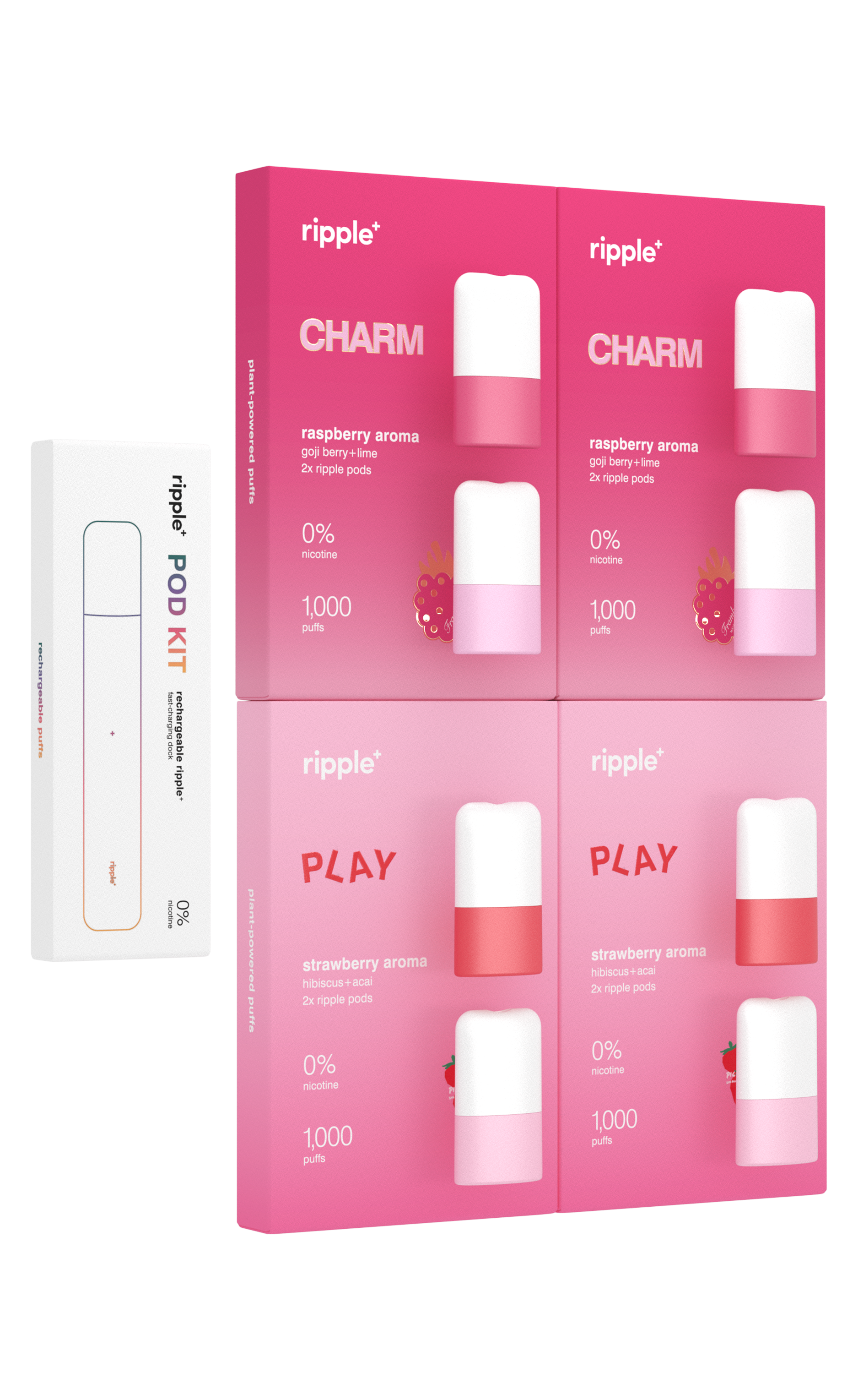 Each ripple⁺ pod will deliver 500 puffs (each pack contains 2x pods), meaning you get multiple days & weeks of plant-powered goodness. You know where to find us when you need a new batch!