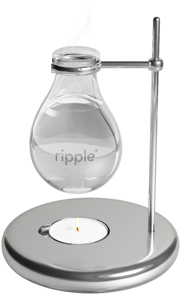First, add water to your glass vessel then add 5-10 drops of your chosen aroma. Light the tea light below, and let the heat gently diffuse the fragrance oil throughout your space. Easy.