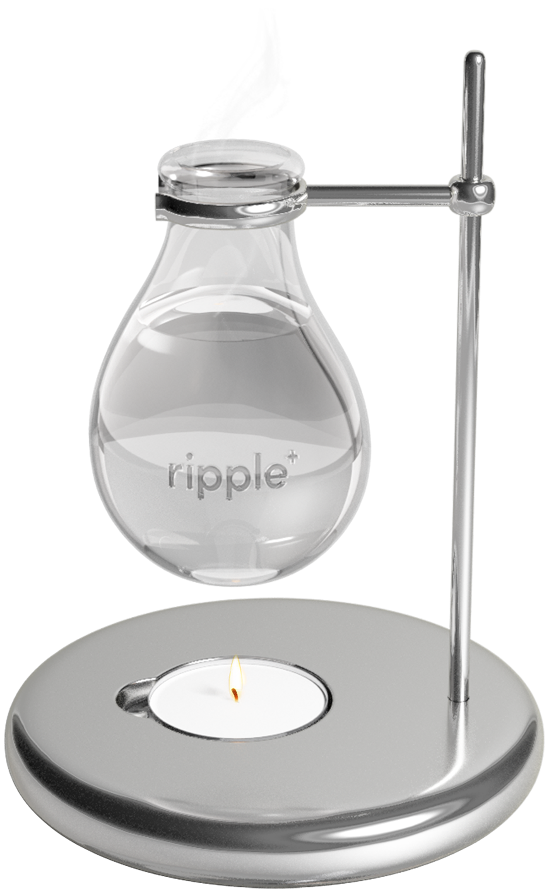 First, add water to your glass vessel then add 5-10 drops of your chosen aroma. Light the tea light below, and let the heat gently diffuse the fragrance oil throughout your space. Easy.