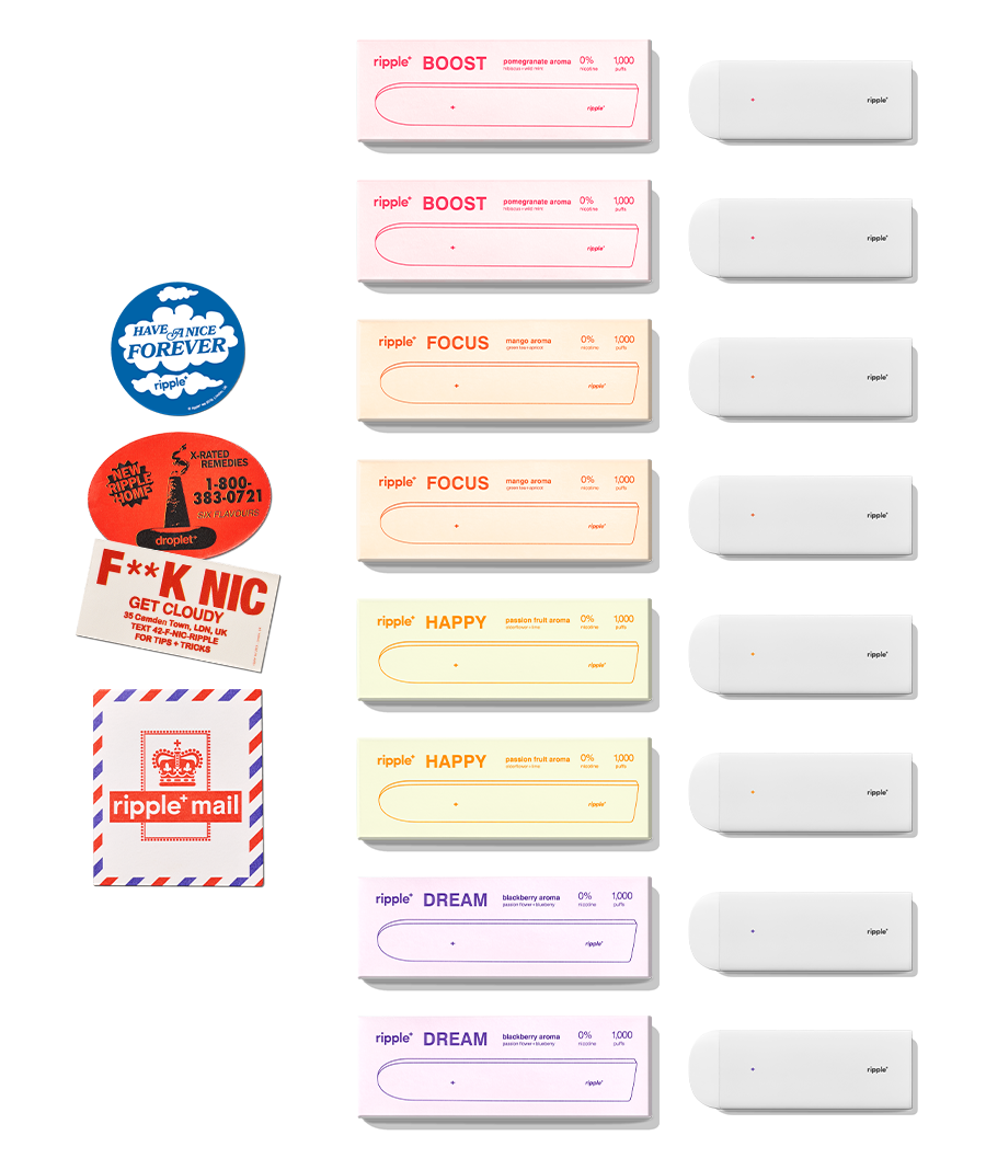 Hell no. Ripple is a portable aromatic inhaler which, is totally nicotine-free and non-addictive. Which, is why we’re here, doing our plant-powered thing! Our next-gen aromatic diffusers are designed to help with oral fixation by replicating that hand-to-mouth gesture associated with smoking. The difference? We don’t use nicotine; we use plant extracts and natural aromas to transport you to a puff-able, non-addictive utopia. Sweet!