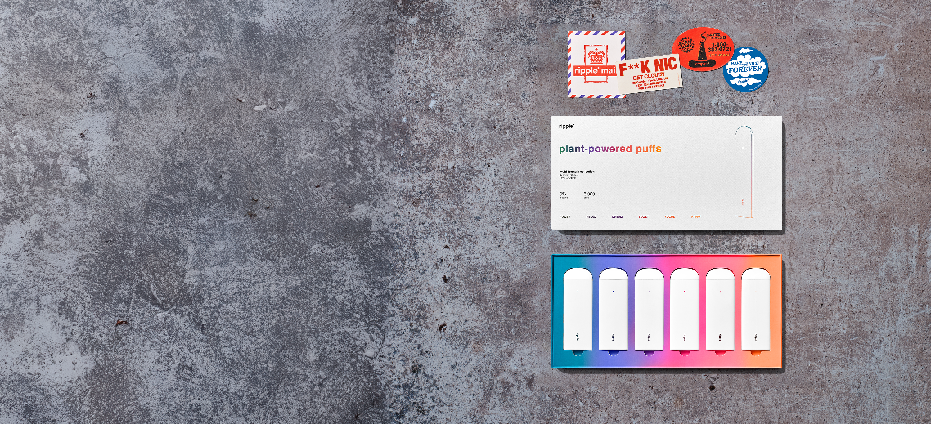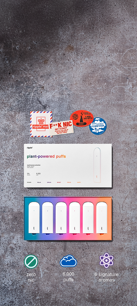 Ripple+ is a nicotine-free portable aromatherapy diffuser, delivering the benefits of natural botanical blends. From our rechargeable device giving you endless hours of plant-powered goodness, to our single-use formulas, our diffusers are a gateway to a plant-powered utopia.