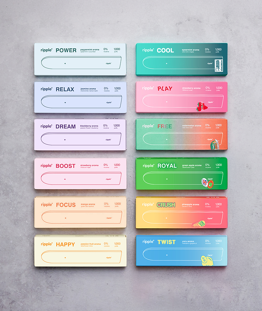 You have every ripple⁺ aroma available at the tip of your fingers. 12 aromas. 12,000 puffs. Non-stop enjoyment. This experience will leave you in a cloudy state, but you’ll be experiencing the ripple⁺ world in full effect.