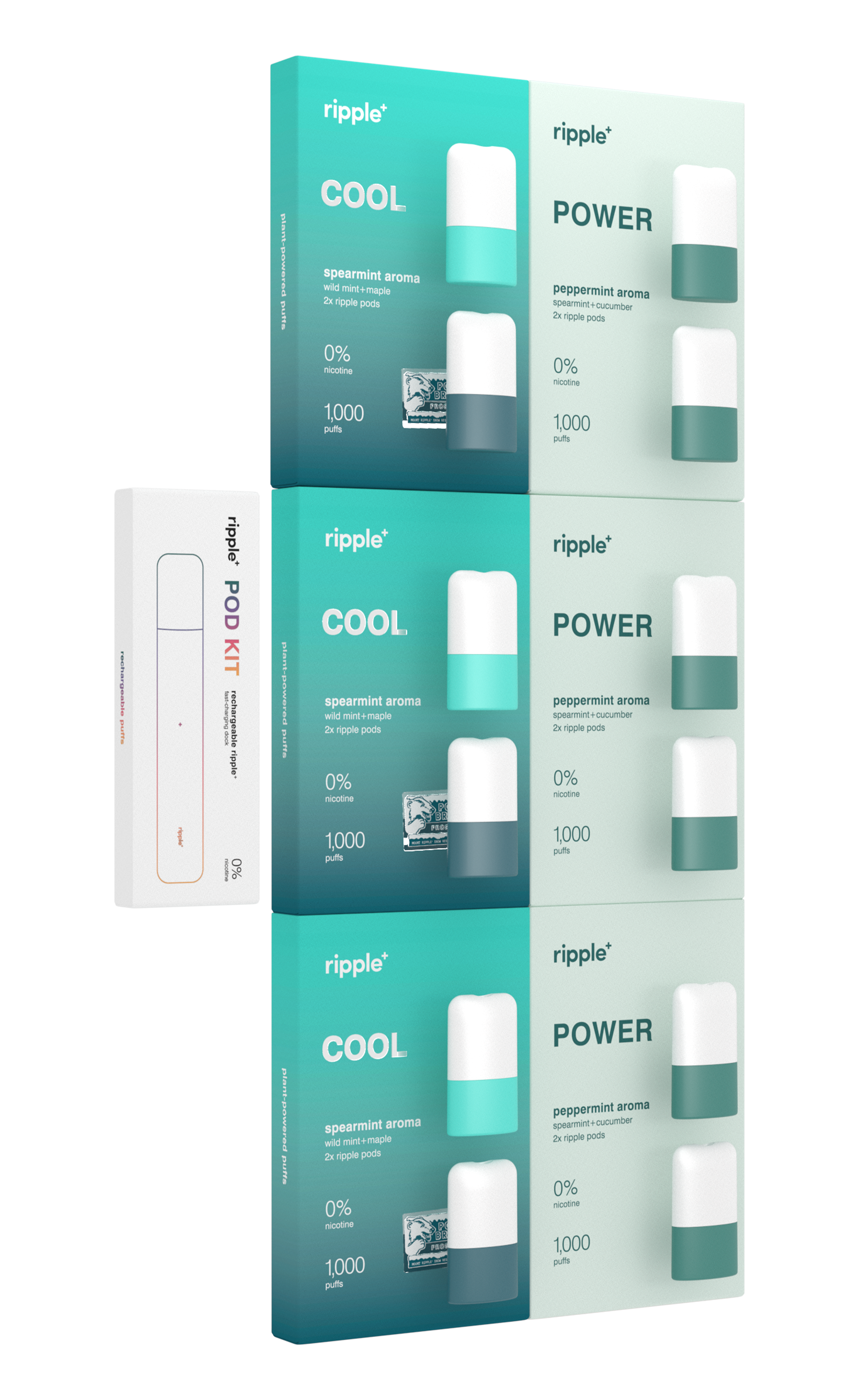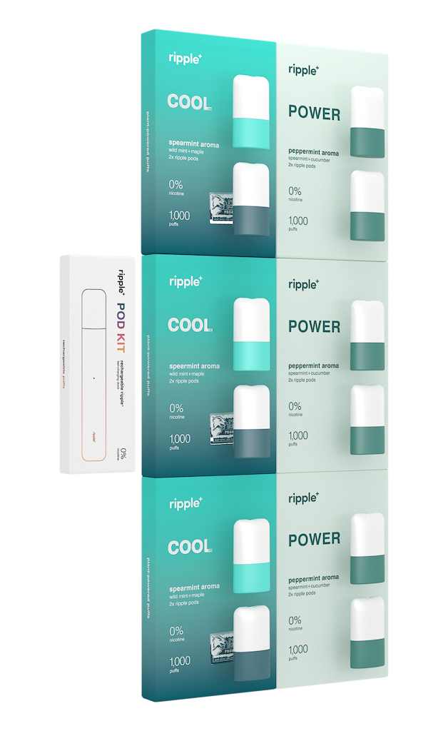 Each ripple⁺ pod will deliver 500 puffs (each pack contains 2x pods), meaning you get multiple days & weeks of plant-powered goodness. You know where to find us when you need a new batch!