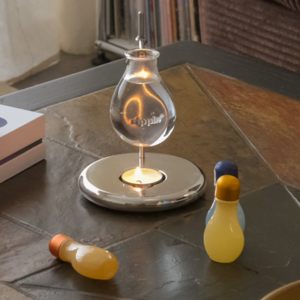 First, add water to your glass vessel then add 5-10 drops of your chosen aroma. Light the tea light below, and let the heat gently diffuse the fragrance oil throughout your space. Easy.