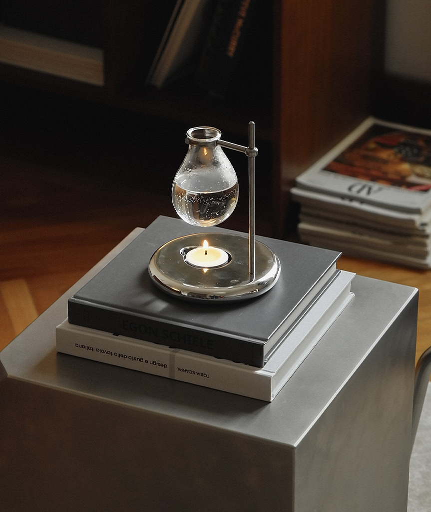 Once you set up your burner, add water into the glass vessel with 5-10 drops of your chosen fragrance oil, light the tealight candle below, and let the warmth release fragrance into the air.