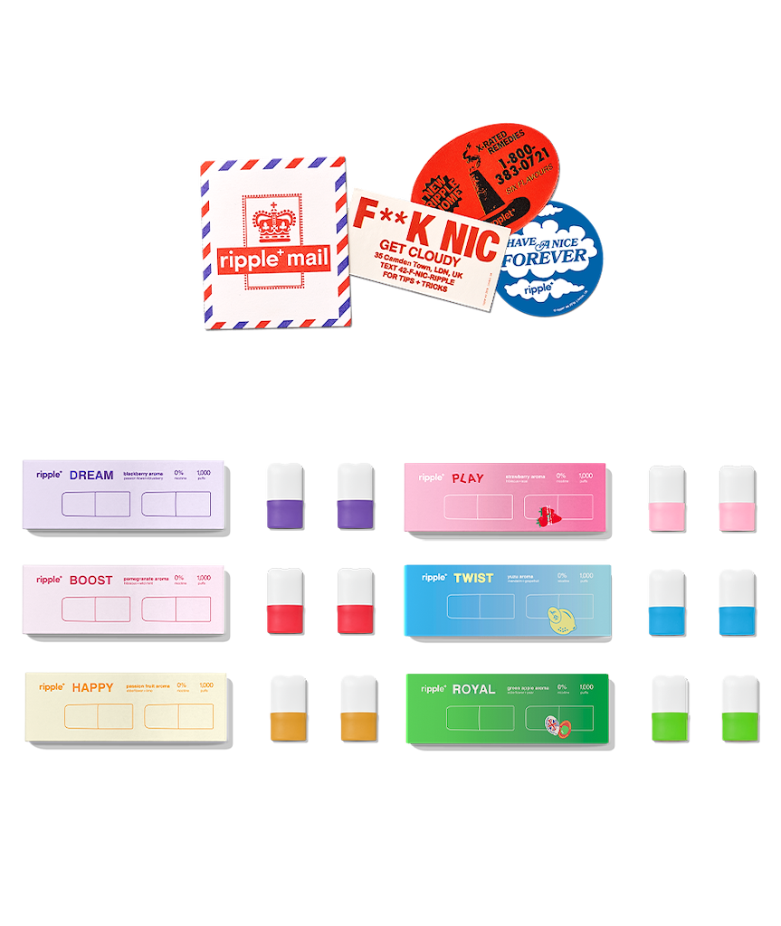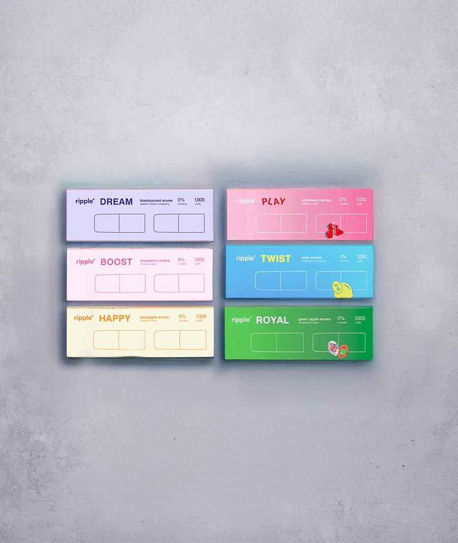 You have every ripple⁺ aroma available at the tip of your fingers. 6 aromas. 6,000 puffs. Non-stop enjoyment. This experience will leave you in a cloudy state, but you’ll be experiencing the ripple⁺ world in full effect.